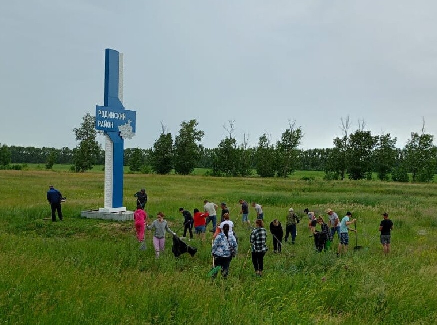 Работники администрации Родинского района и краевых учреждений приняли участие в субботнике на объектах ППМИ, реализованных в 2023 - 2024 годах.