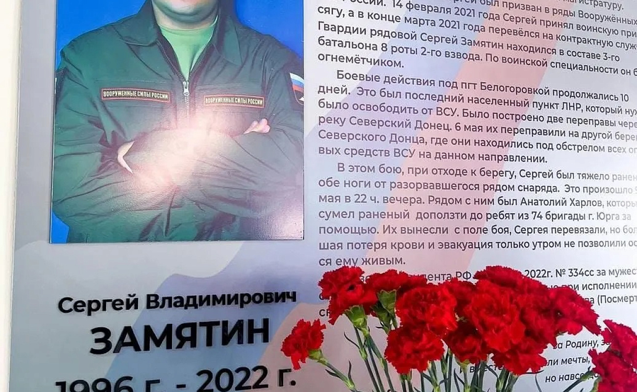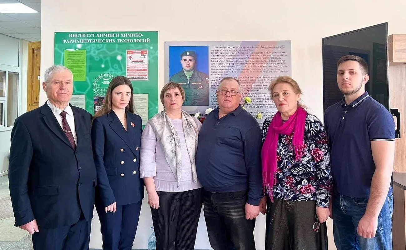 22 марта в АГУ состоялась встреча родственников, друзей, одногруппников, товарищей и земляков семьи Замятиных. В конце прошлого года на химическом факультете университета установили памятную доску герою СВО, выпускнику 2020 года - Сергею Замятину (1996–2022), который погиб при исполнении воинского долга в зоне СВО. Мужественный, отважный, самоотверженный человек. Русские парни, как и их деды и прадеды 80 лет назад, спасают страну и весь мир от неонацизма. Жизнь и подвиг солдата России стали примером долга и чести. Сергей посмертно награжден орденом Мужества.