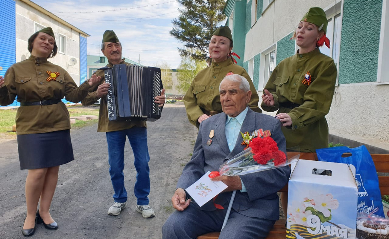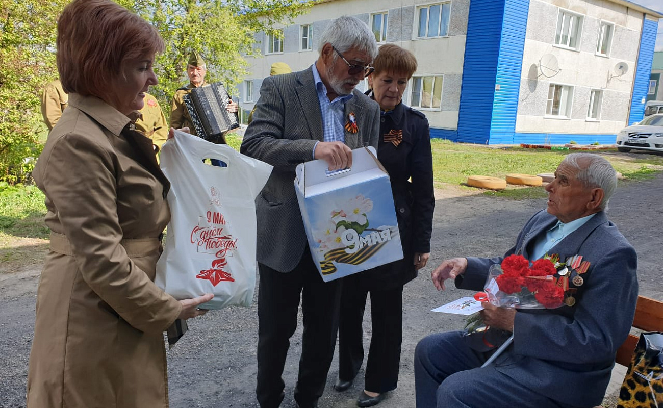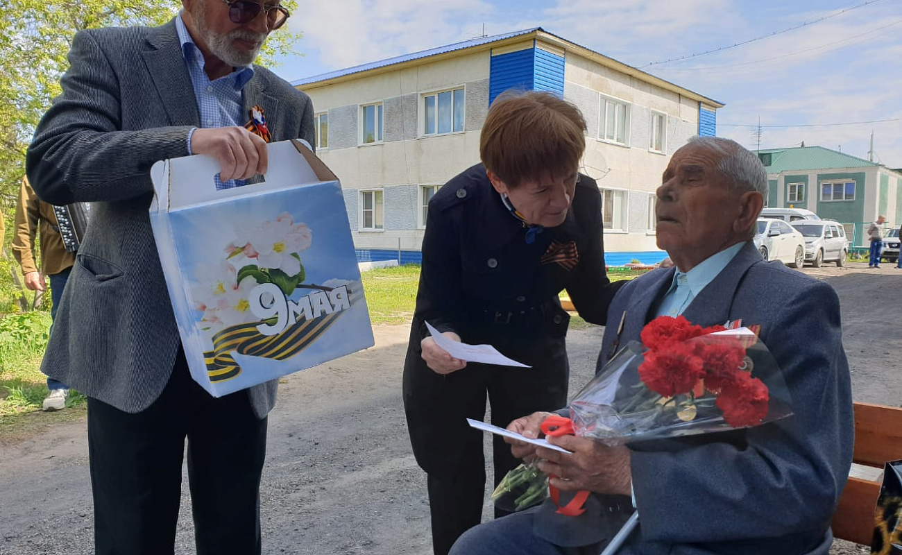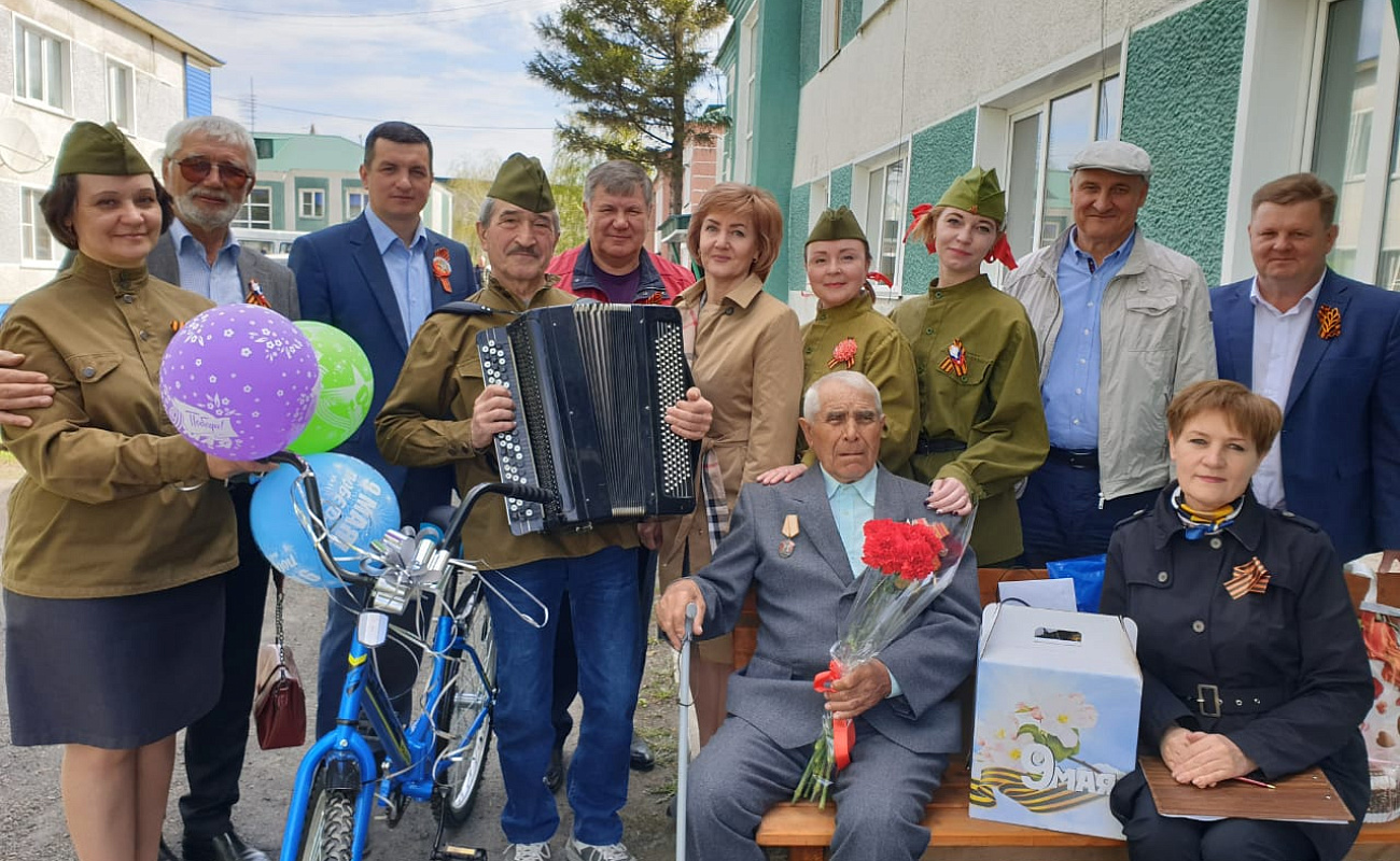 6 мая поздравления от руководителей районных и краевых ведомств, депутата АКЗС, представителей партии "Единая Россия" принимал участник ВОВ Онофрей Пантелей Сергеевич