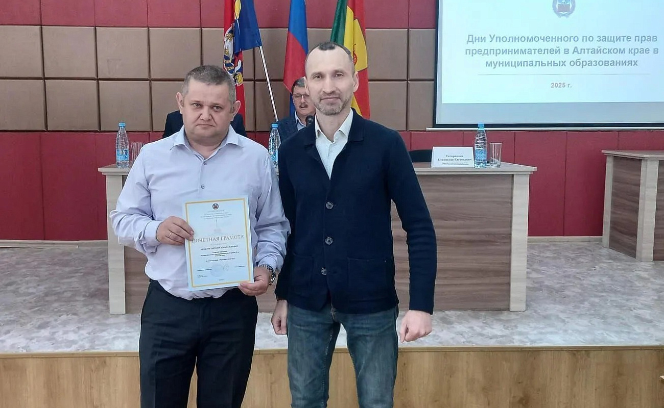 В преддверии профессионального праздника Почетными грамотами управления Алтайского края по развитию предпринимательства и рыночной инфраструктуры за добросовестный труд и профессионализм награждены Евгений Мошляк, Елена Викторовна Шевелева, Наталья Кобызева, Галина Пуховец, Сергей Петров. Важно понимать, что успех предпринимательства — это не только успех индивидуальных бизнесменов. Это благосостояние района, новые рабочие места и развитие инфраструктуры.